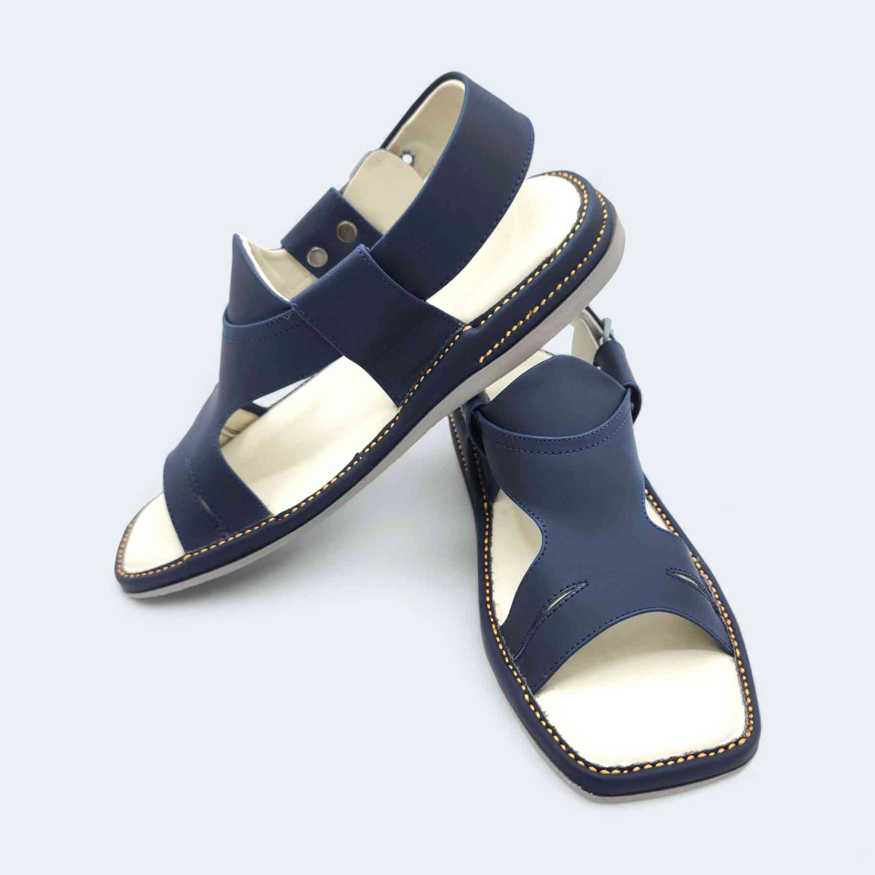 Discover unmatched comfort with a bold twist! 🌟 Our Panjedar Medicated Chappal in Blue combines the iconic split-strap Peshawari Chappal style with a lightweight design and ultra-soft medicated sole for all-day wear. This stylish Kaptan Chappal is handcrafted for men who value tradition, comfort, and standout color.